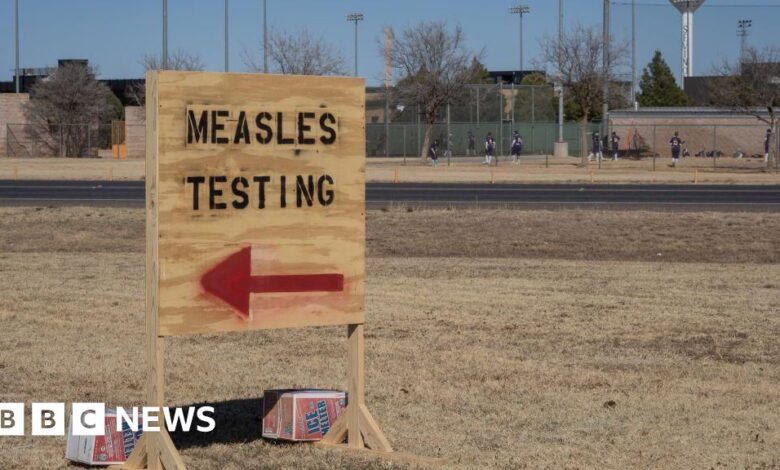 The outbreak originated in a religious community that strongly rejects vaccines. Local health officials in western Texas have told the BBC they have seen limited progress in attempts to improve vaccination rates.